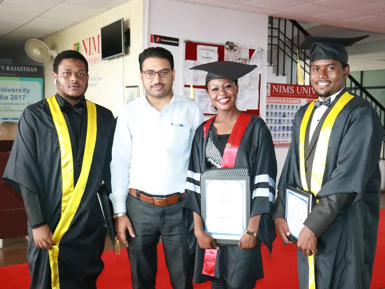 VISA: All the foreign/ international students will require a "Student VISA" endorsed to Nims University Rajasthan, Jaipur for joining fill time regular study programme. No other endorsement is acceptable. Students wishing to join a research study programme will require a "Research VISA" endorsed to Nims University Rajasthan, Jaipur.